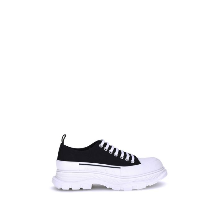 The Tread Slick Sneakers by Alexander McQueen feature a lace-up front closure and heel pull for easy donning. Featuring a platform sole and a round rubber toe, they also feature the logo imprinted on the side, combining style and comfort in a contemporary design.
