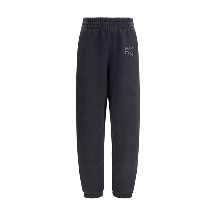 The Sweatpants with raised glitter logo detailing by Alexander Wang blend comfort with the brand’s signature attitude. Crafted from soft brushed cotton blend, they feature an overlapping “wang” logo enhanced with sparkling accents that elevate the look. An elasticated waistband ensures an easy, flexible fit, while zip pockets add a practical and modern touch to the sporty silhouette.