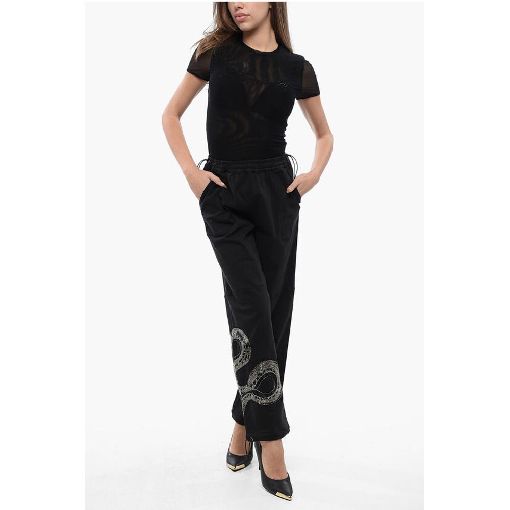 AllSaints Stretch Cotton Pants with Elastic Waistband and Decorated Sn