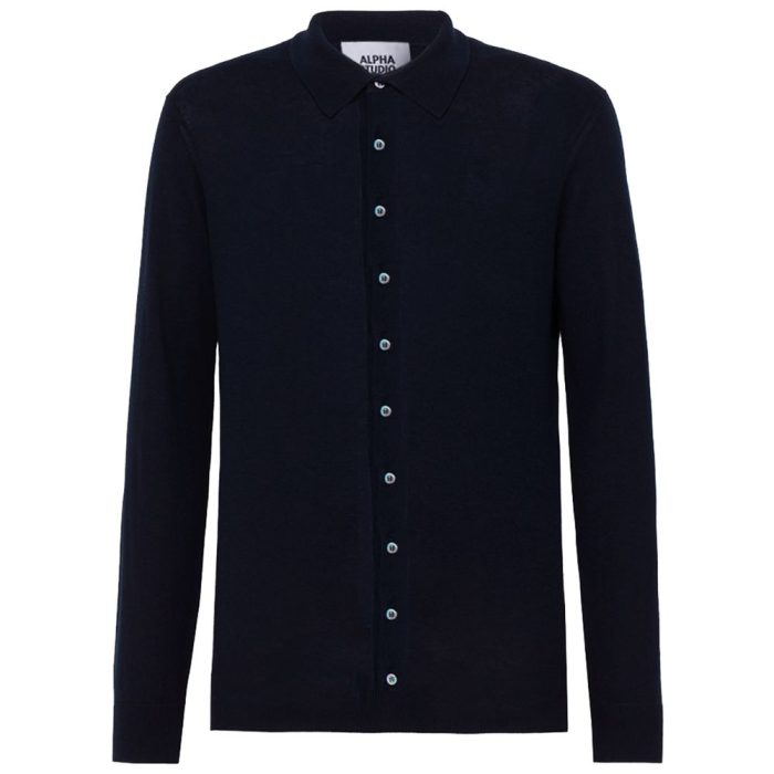 Alpha Studio dark blue cotton shirt with long sleeves and button closure
