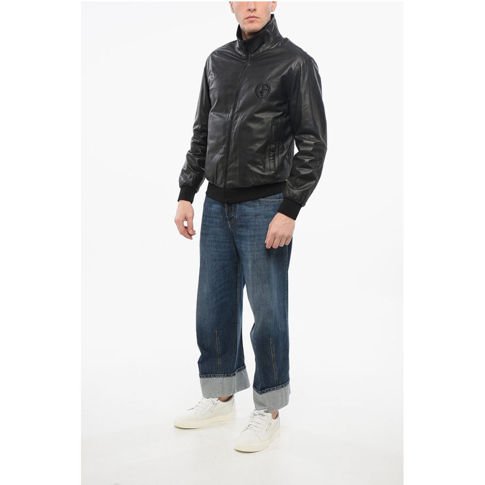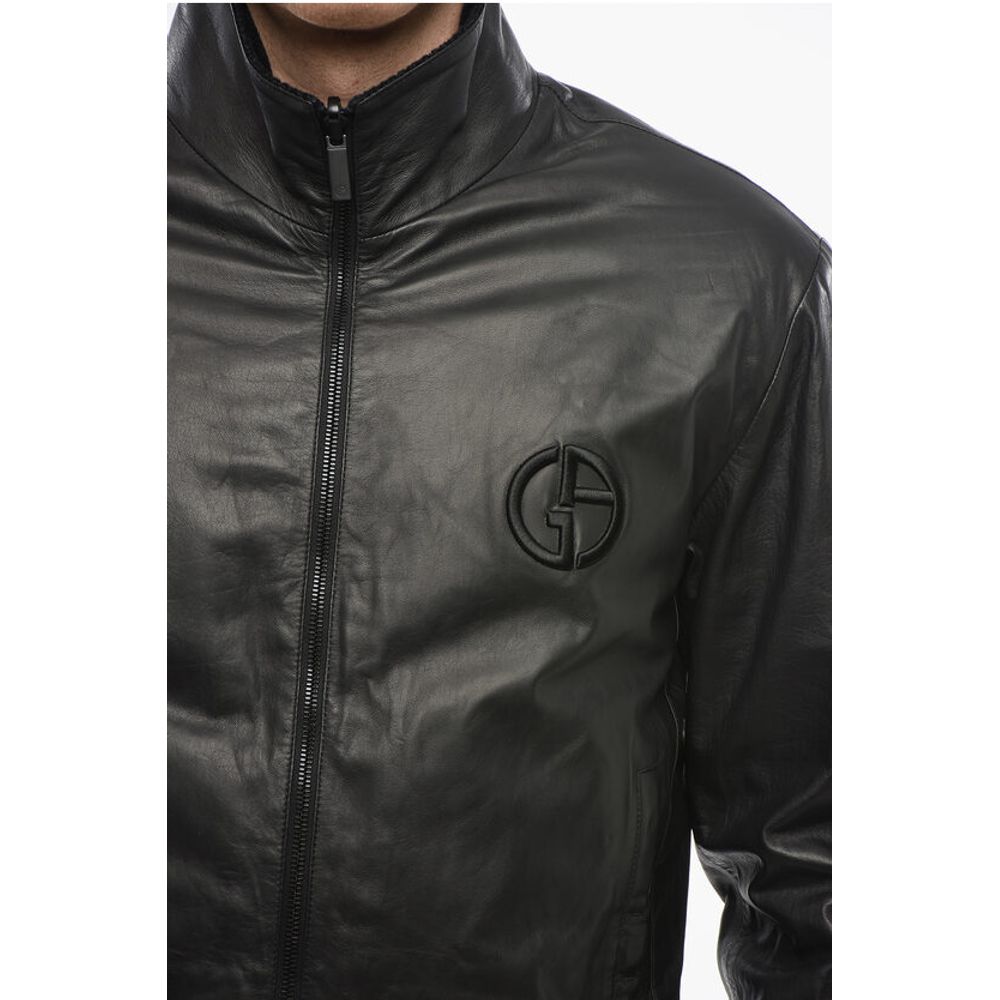 Armani GIORGIO Reversible Leather Jacket with Embroidered Logo
