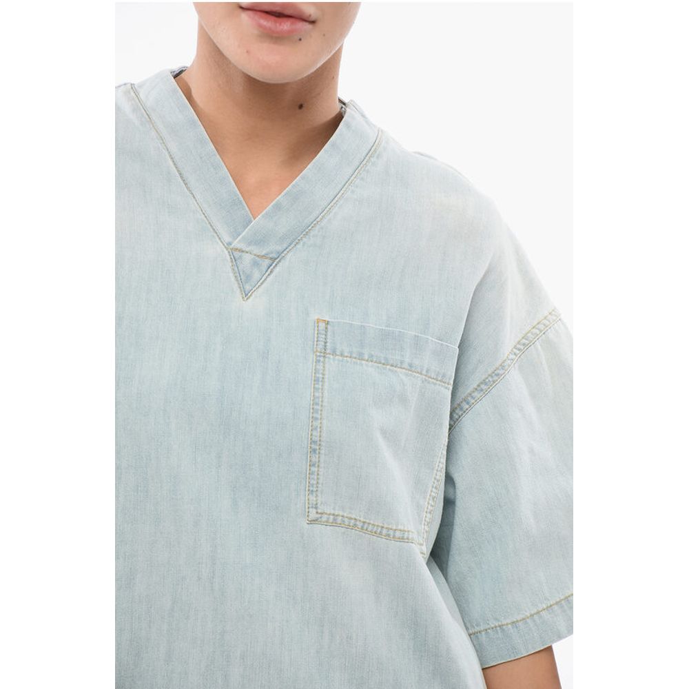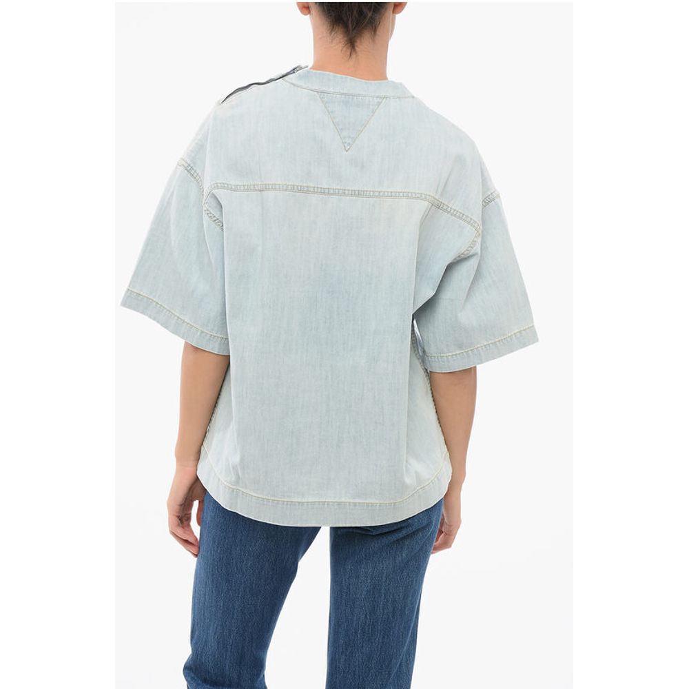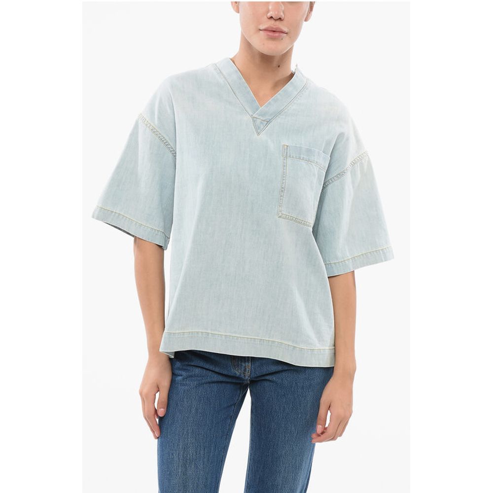 Bottega Veneta Light Washed Denim Blouse with Breast-pocket