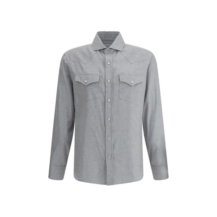 Brunello Cucinelli Gray Cotton Pattern Shirt
