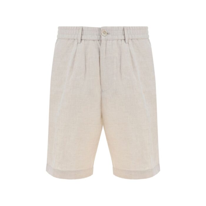 Linen Shorts by Brunello Cucinelli, front button and zipper closure, elasticized waistband, two side slash pockets, two welt pockets with flap at back, waistband loops, regular fit.