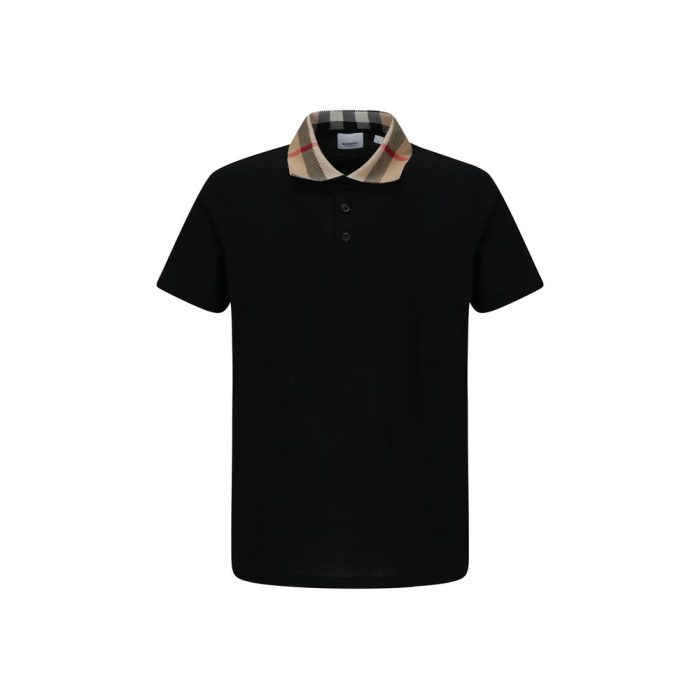Cotton Cody Polo Shirt by Burberry, a classic collar embellished with the brand’s iconic Archivio Check pattern, a front button closure, a monochrome design, and a regular fit.