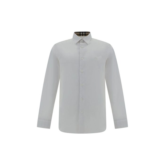 Cotton Sherfield Casual Shirt by Burberry, front closure by matching buttons, classic collar, iconic The Equestrian Knight logo embroidered on front slim fit.