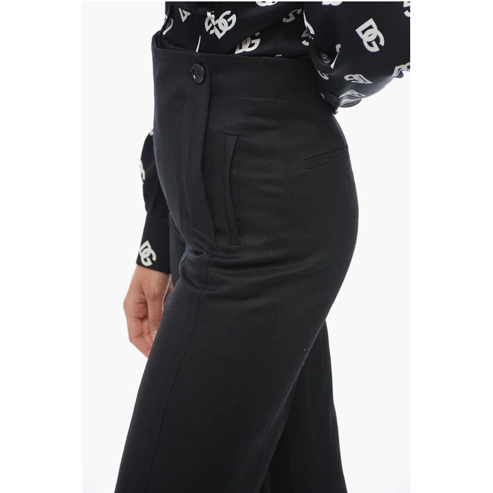Chloé Flax Blend Palazzo Pants with Double Buttoning