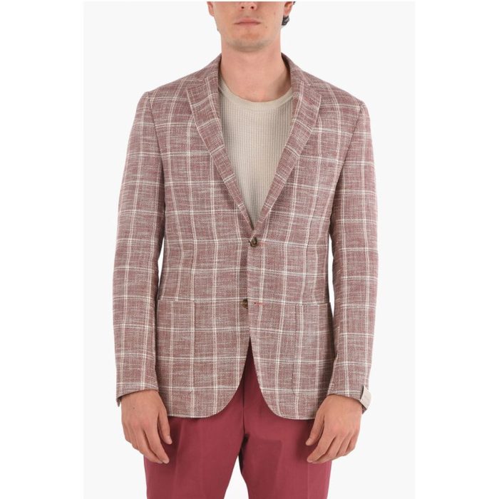 Corneliani Flax Blend GATE Blazer with Windowpane Check Pattern