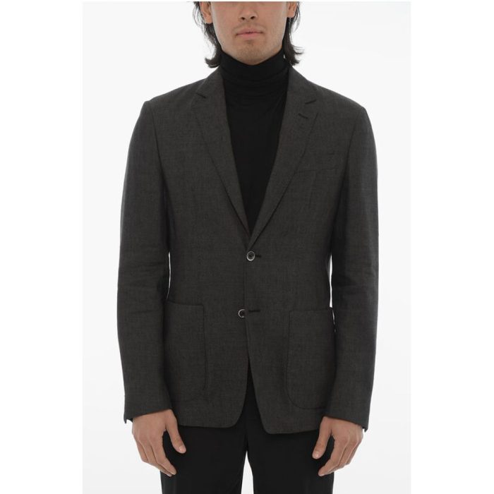 Corneliani ID Flax and Virgin Wool Unlined Blazer with Patch Pockets