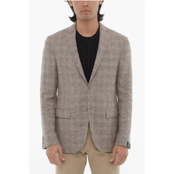 Corneliani Virgin Wool and Linen Half Lined 2-Buttons Blazer with Flap