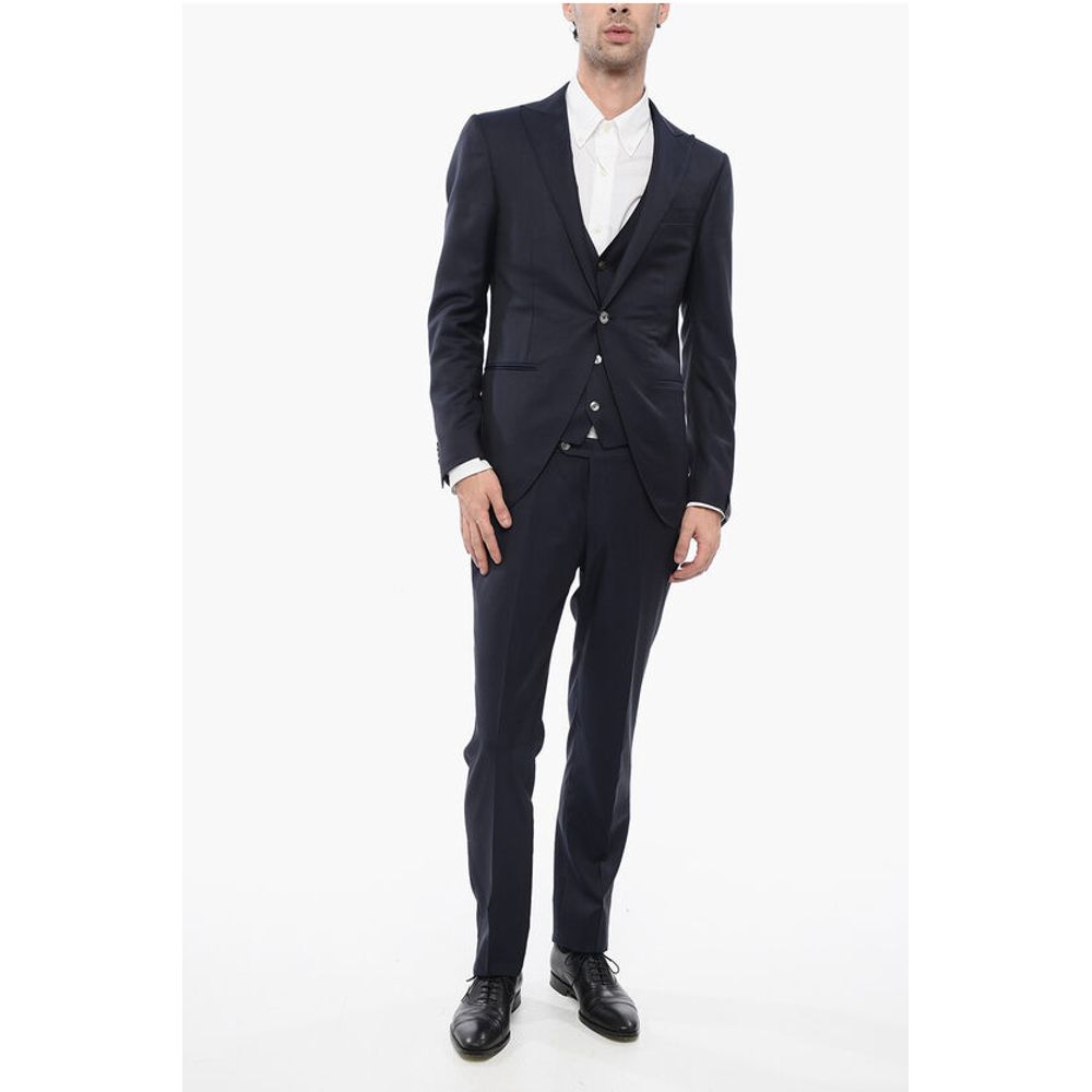 Corneliani Virgin Wool and Silk Peak Lapel 3 Piece Waistcoat Suit
