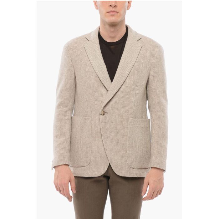 Corneliani Woven Wool RESET Blazer with Herringbone Motif