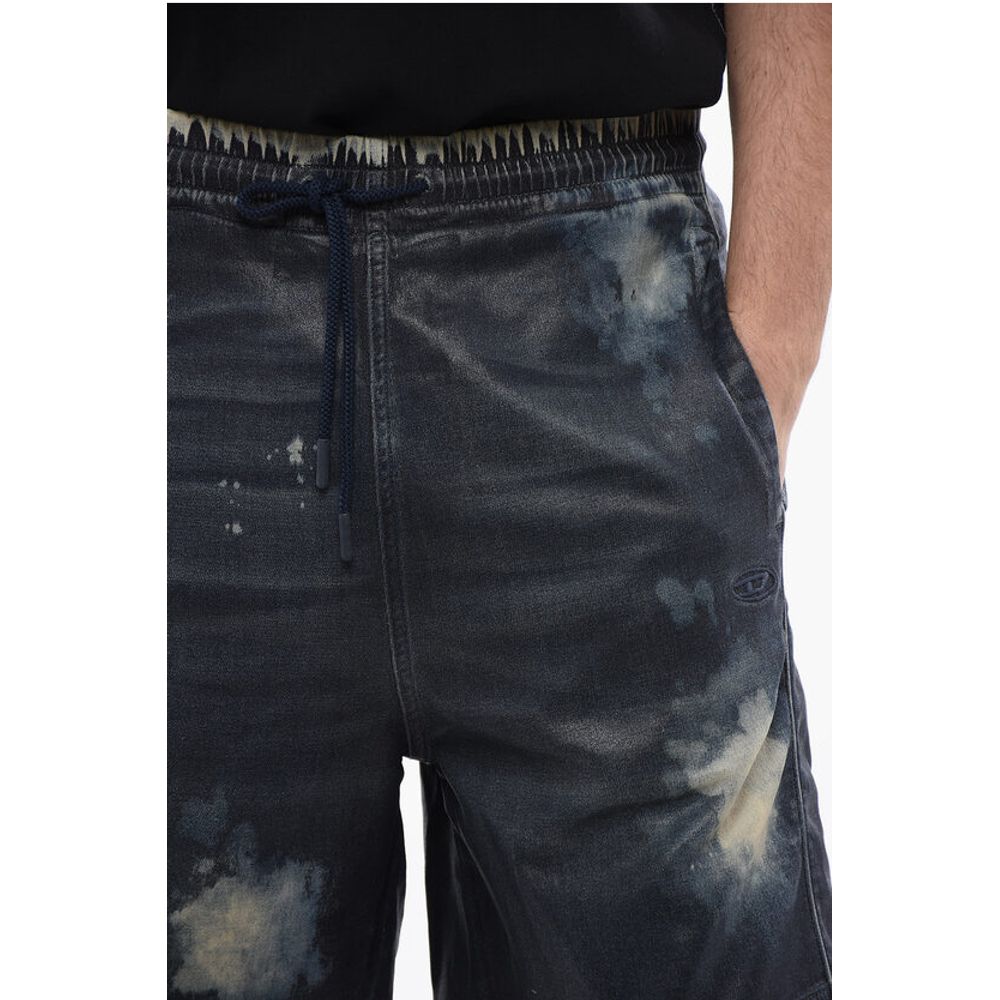 Diesel Acid-Wash Effect Coated Track Denim D-BOXY-S Shorts