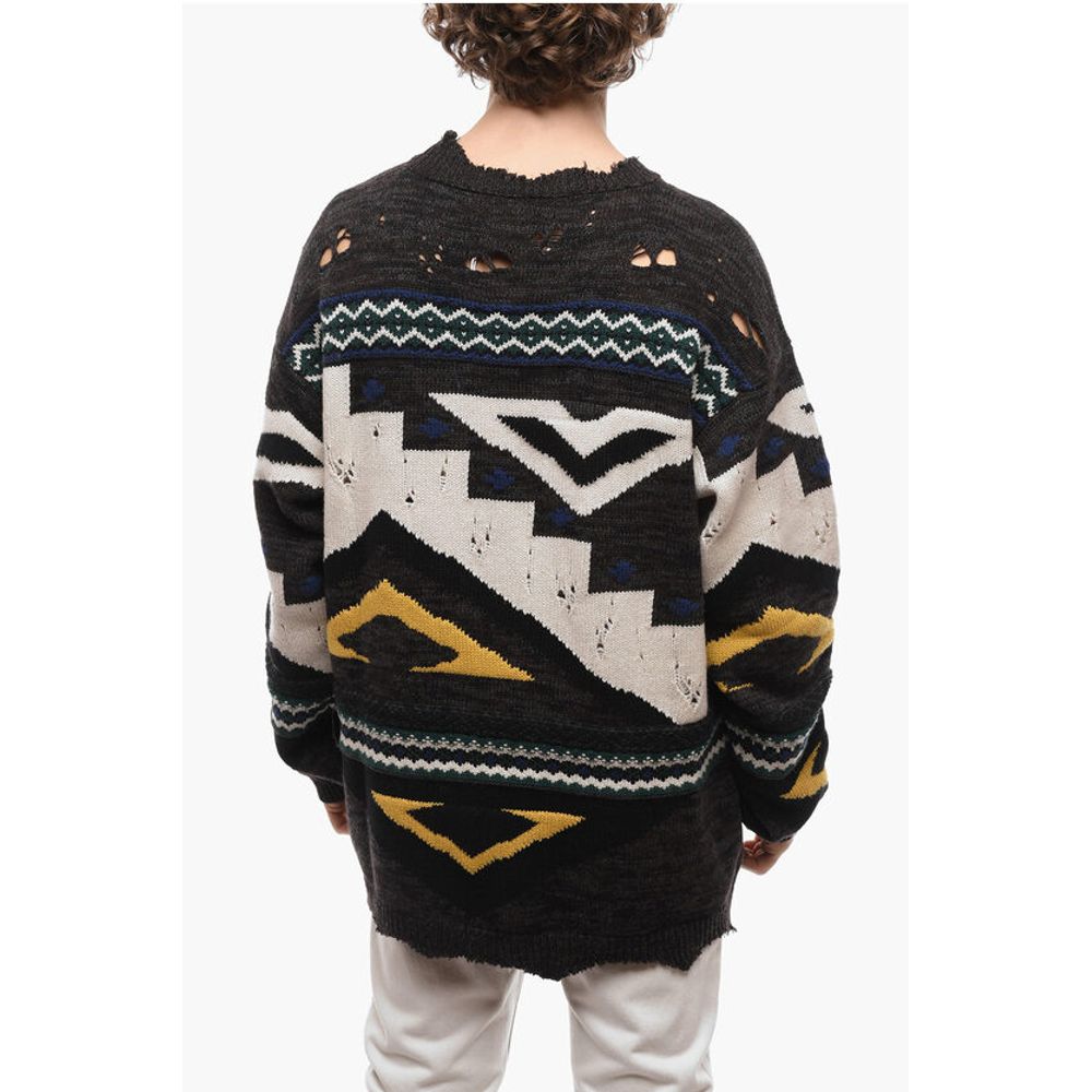 Distressed Jacquard Cashmere Blend Pullover with Crew Neck