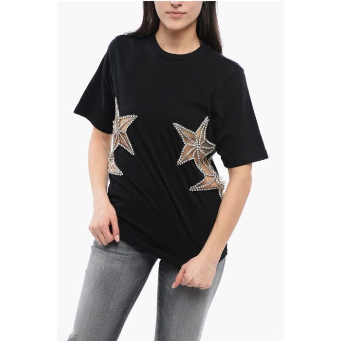 Dsquared² Crew Neck STAR T-Shirt with See Through Inserts and Rhinesto