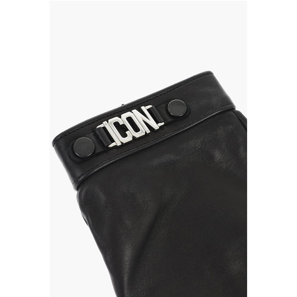 Dsquared² Leather ICON Gloves With Metal Detail and Button