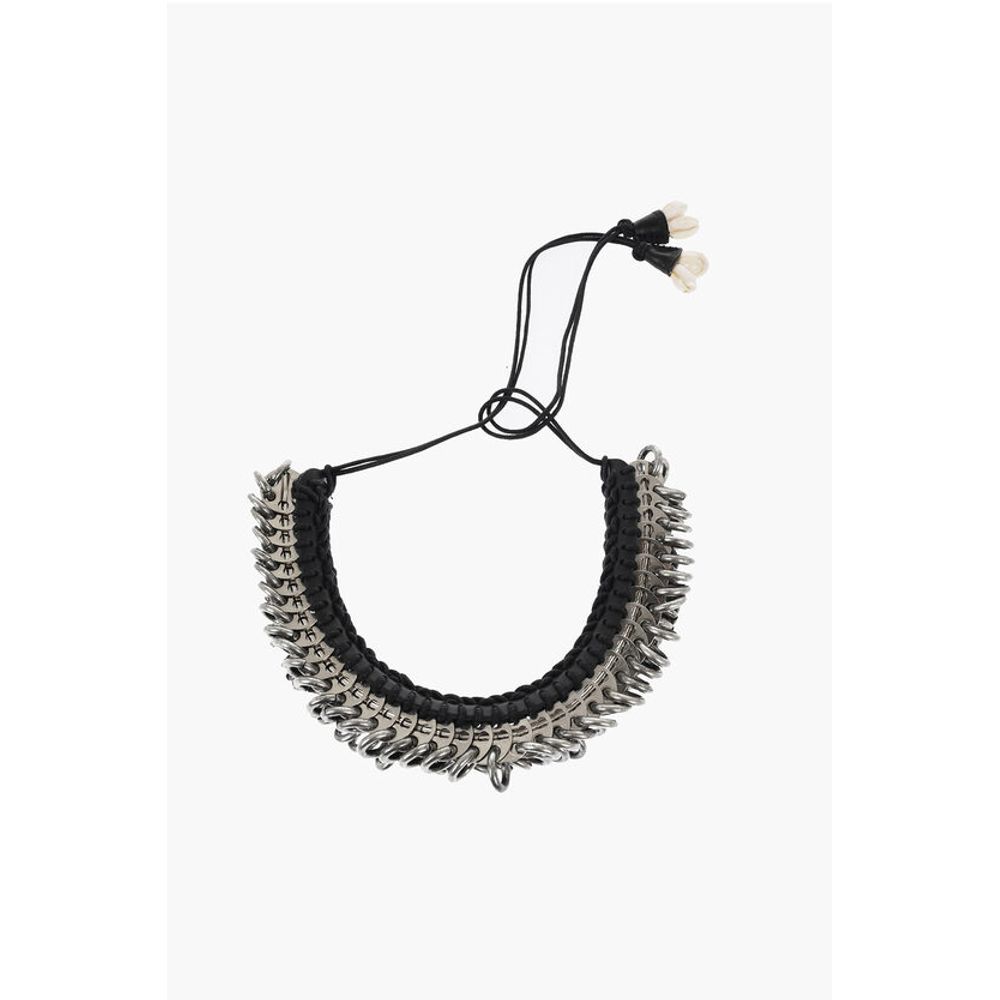Dsquared² Metal AFRICAN HYENA Plastron Necklace with Leather Trim