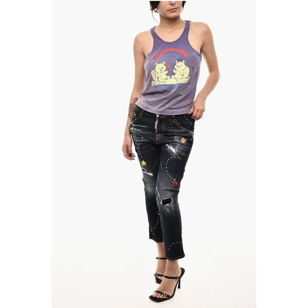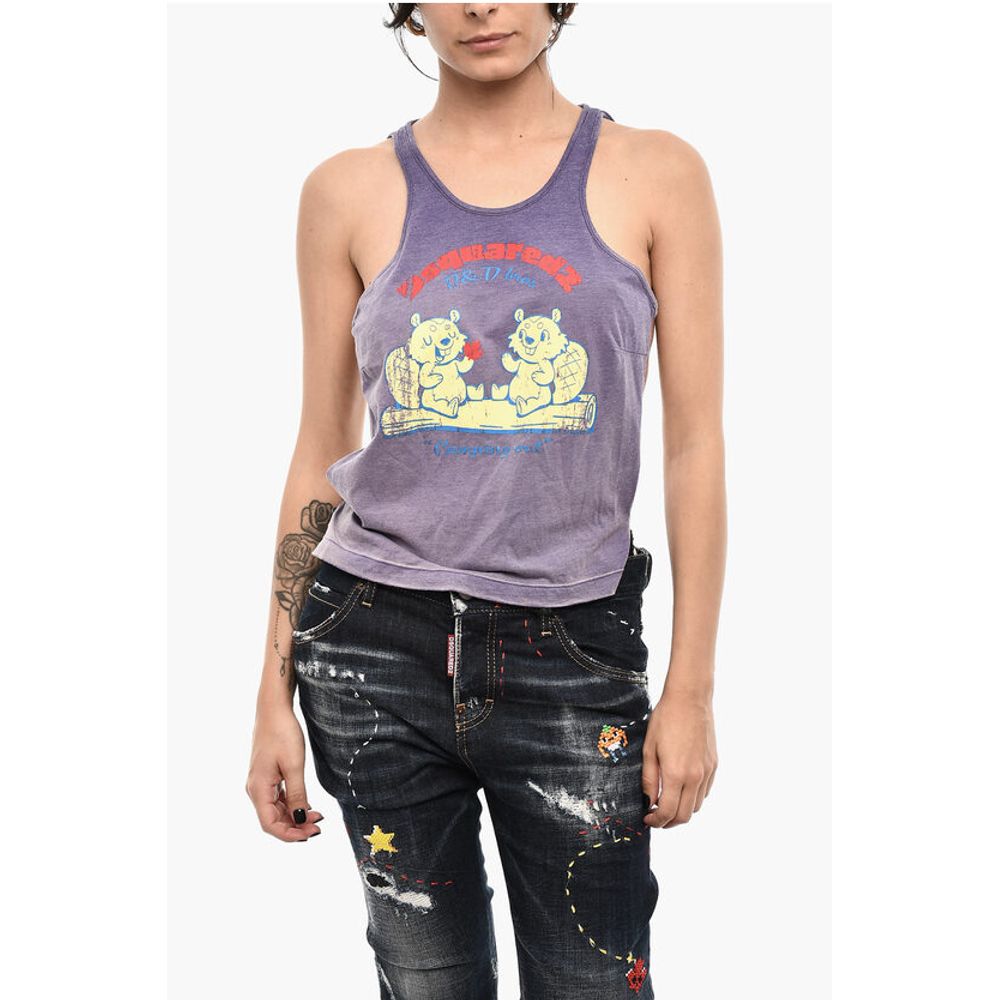 Dsquared² Open Back Cotton Tank Top with Frontal Print