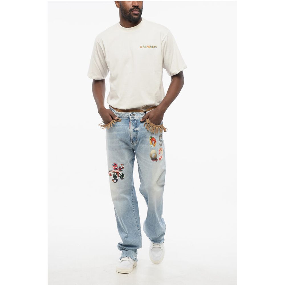 Dsquared² Roadie Fit Denims with Suede Fringes and Patches 22cm