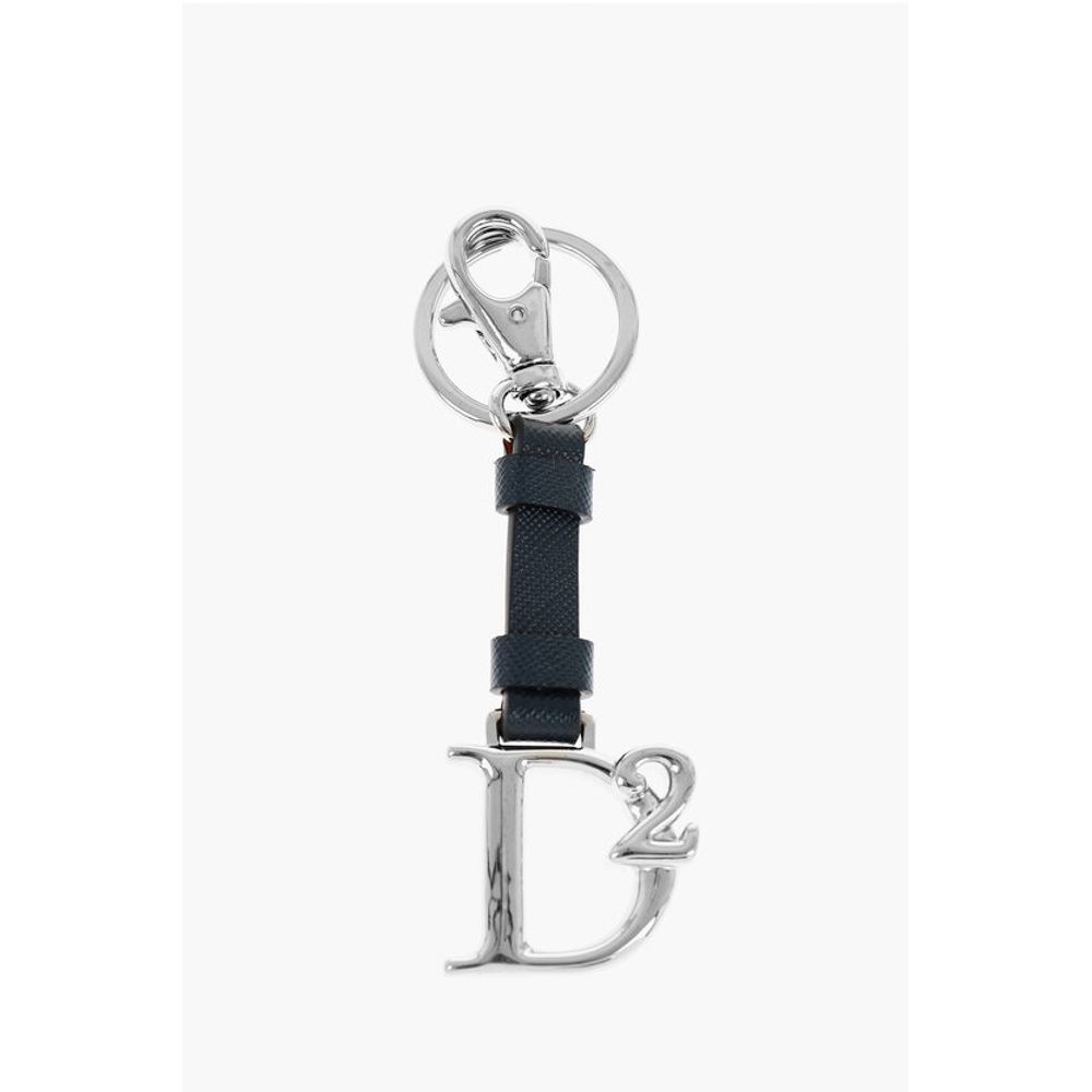 Dsquared² Saffiano Leather D2 STATEMENT Keyring with Silver-Tone Metal