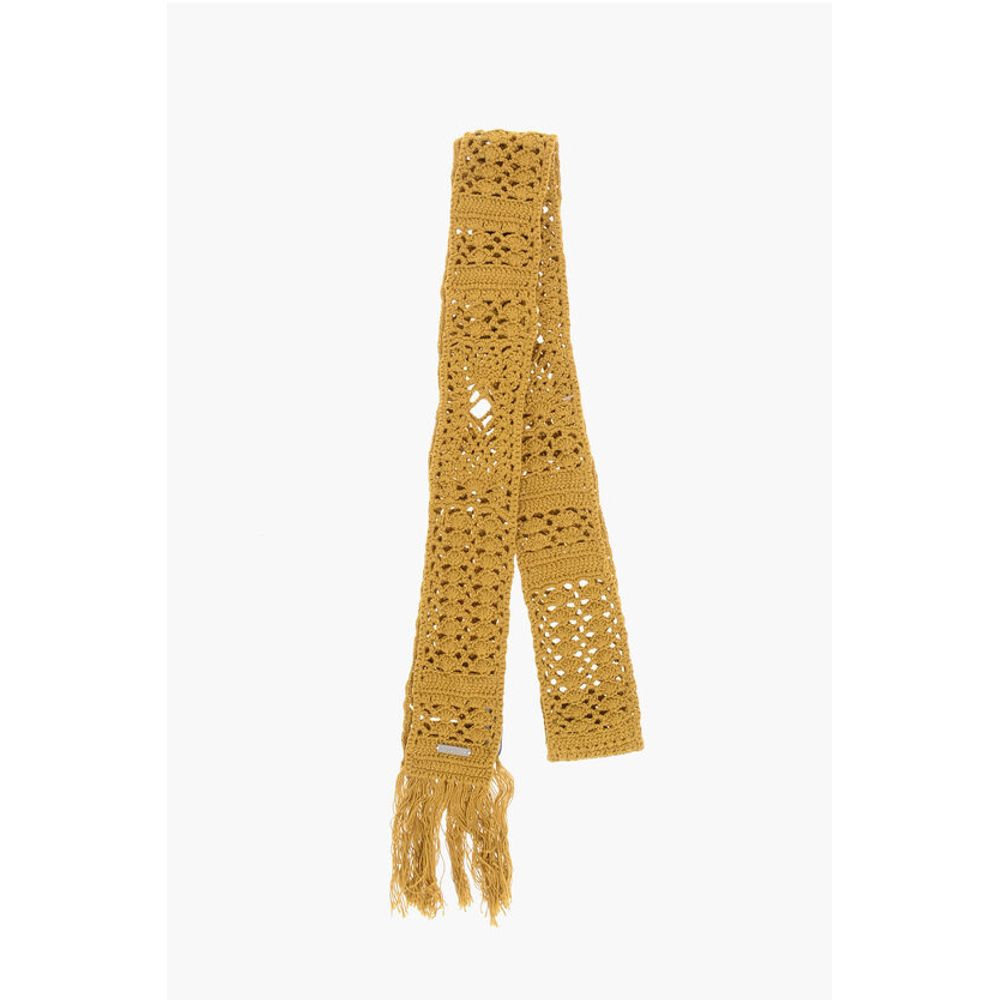 Dsquared² Solid Color Crochet Scarf with Fringes