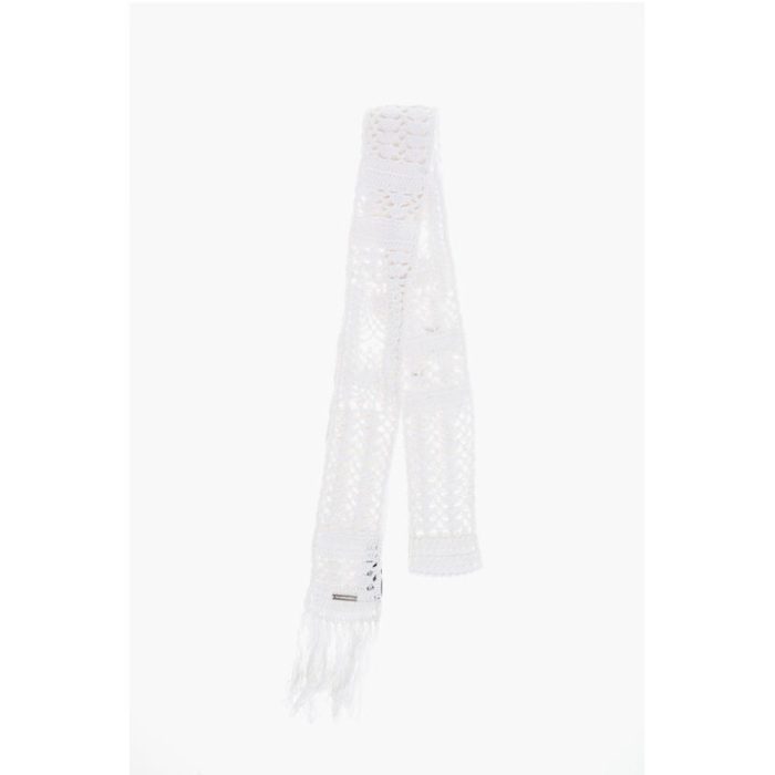 Dsquared² Solid Color Crochet Scarf with Fringes