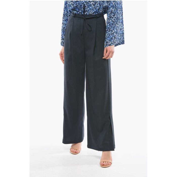 Eudon Choi Virgin Wool TANDIN Wide Leg Pants with Ankle Split and Belt