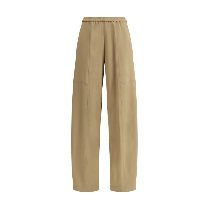 Forte_Forte’s Cargo Pants are a contemporary, relaxed style with an elastic waistband, perfect for those seeking comfort without sacrificing elegance. The high waist and elastic waistband ensure a secure and comfortable fit, while the wide leg adds a fluid and modern touch to the design. The two side welt pockets complete the look, offering functionality and a practical yet stylish accent.