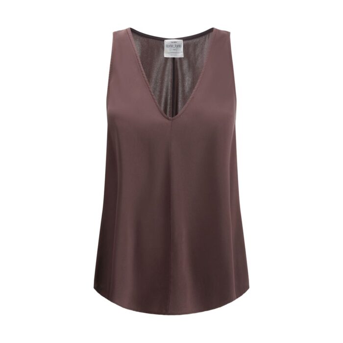 Forte_Forte’s satin V-neck Top is an elegant and refined garment. It has a sleeveless design that makes it ideal for warmer seasons, while the V-neckline gives a touch of discreet sensuality. Made of satin fabric, the top has a sophisticated sheen that makes it perfect for evening looks or special occasions.
