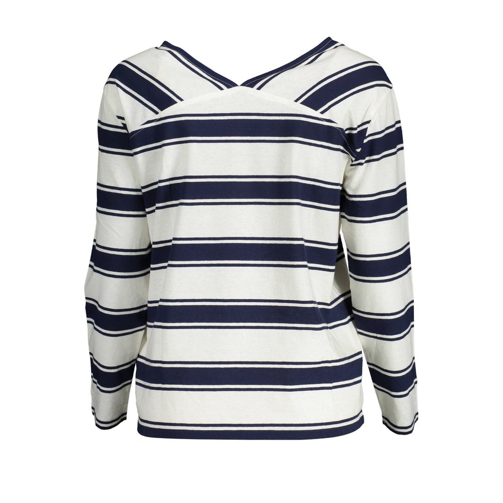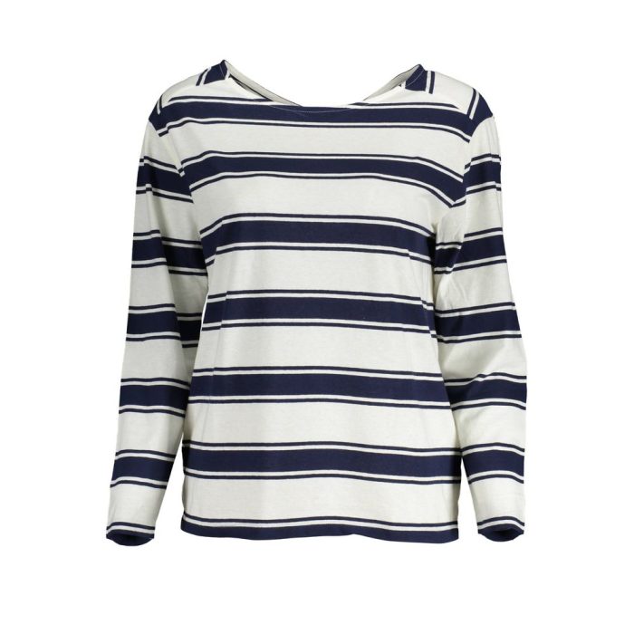 Step into effortless style with the Gant long-sleeved t-shirt. This chic piece features a classic round neckline complemented by an alluring back “V” cut, making it a versatile addition to your wardrobe. The iconic Gant logo subtly accentuates its clean, white hue, making it a perfect canvas for your bold fashion statements. Expertly crafted from a premium blend of cotton and linen, this top embodies casual elegance with a trendy edge. Engineered for both comfort and style, this timeless Gant creation is designed to elevate your everyday look.
