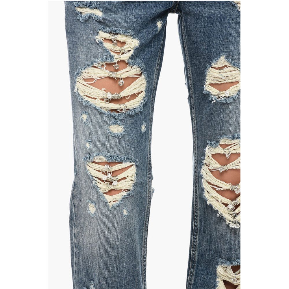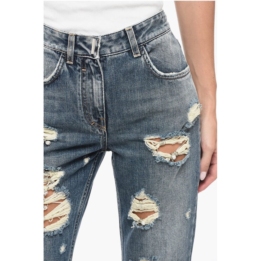 Givenchy Distressed Cotton Slim Fit Denims with Jewel Details 18cm
