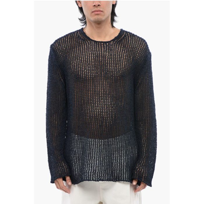 Jil Sander Crew Neck Openwork Cotton Sweater