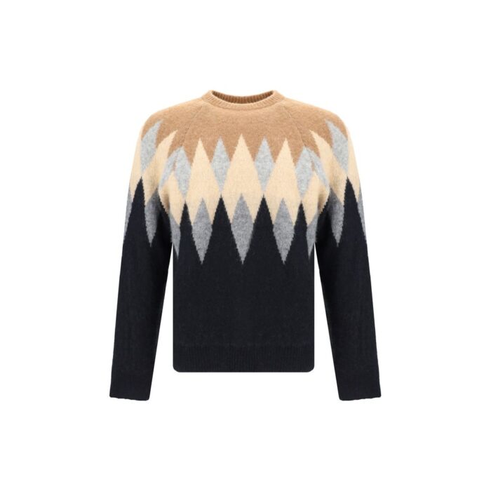 Cashmere Sweater by Laneus, ribbed crew neck, ribbed cuffs, ribbed hem, geometric pattern, regular fit.