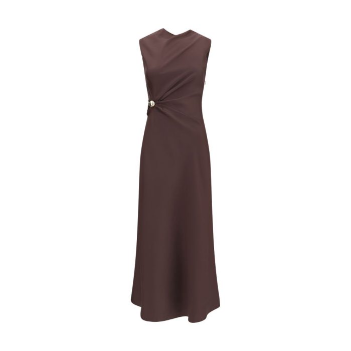 LouLou De Saison’s pure silk midi Dress is an essential and refined piece, embellished with a metallic detail on the front that gives a modern touch. Featuring an elegant round neckline, it has a concealed side zipper closure and a slightly flared bottom that enhances the silhouette. The model is unlined for a natural and sophisticated lightness.