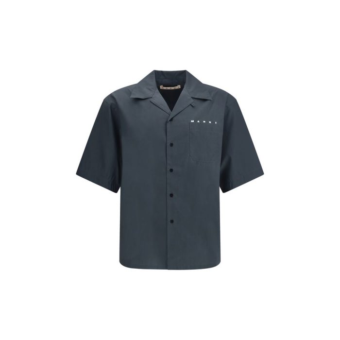 Marni’s Bowling Shirt is an essential garment with a strong, contemporary character. Featuring a classic collar and short-sleeved design, it has a clean silhouette and a relaxed cut, ideal for a casual yet polished look. The patch pocket on the front adds a functional touch, while the monochrome design is enhanced by the brand’s iconic monogram printed in contrast, signing the garment with distinctive style. Perfect for completing casual outfits with graphic and modern elegance.