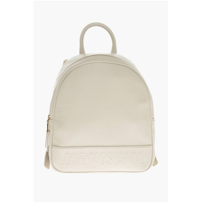 Moschino LOVE Textured Faux Leather Backpack with Embossed Logo