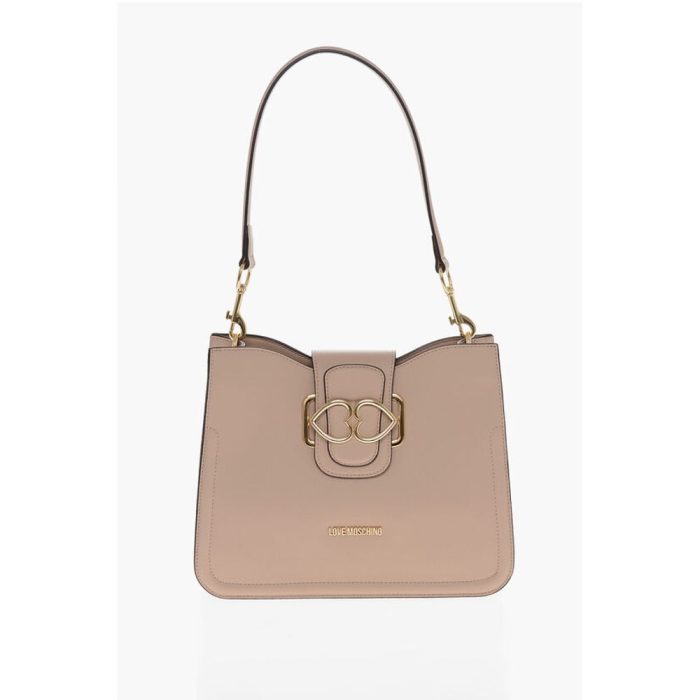 Moschino LOVE Faux Leather Shoulder Bag with Golden Hearts