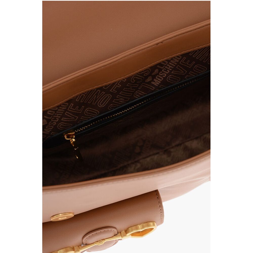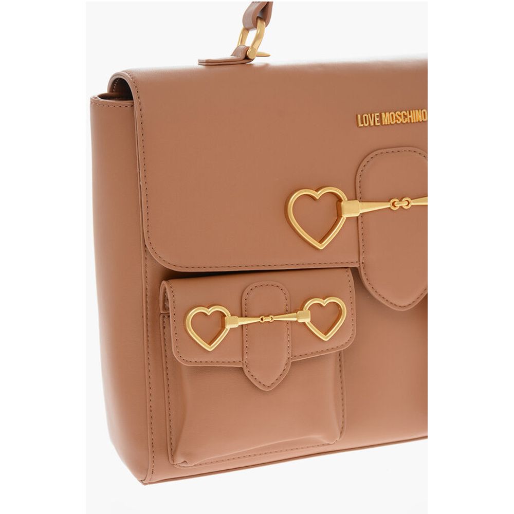 Moschino LOVE Faux Leather Handle Bag with Pockets and Clamp Front