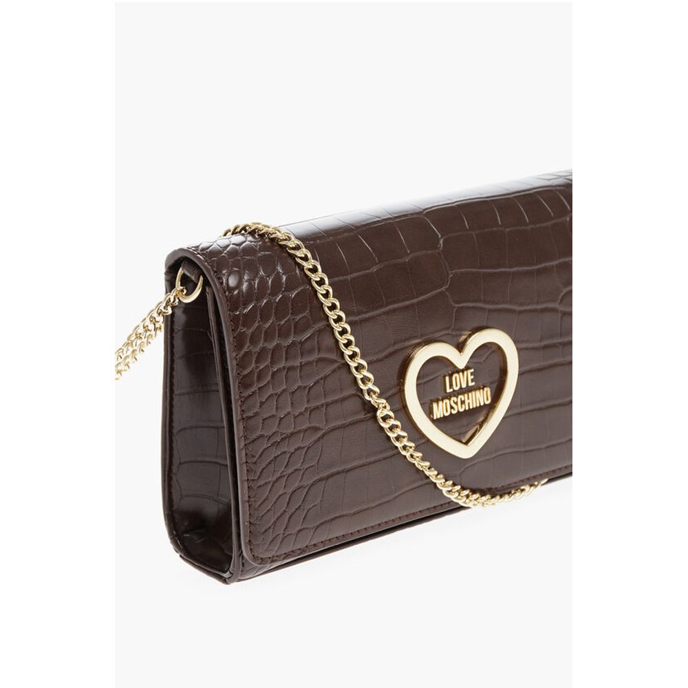 Moschino LOVE Crocodile Effect Faux Leather Bag with Golden Chain