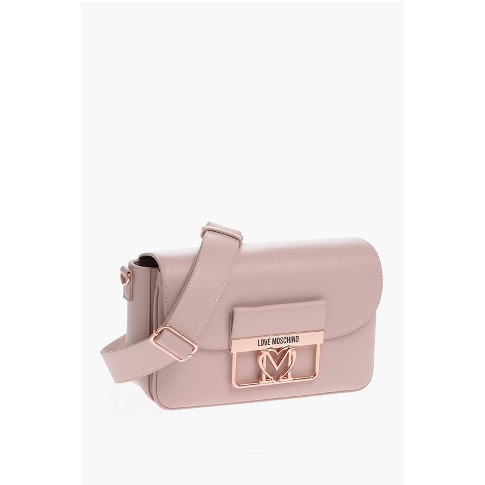 Moschino LOVE Faux Leather Bag with Metal Logo and Removable Shoulder