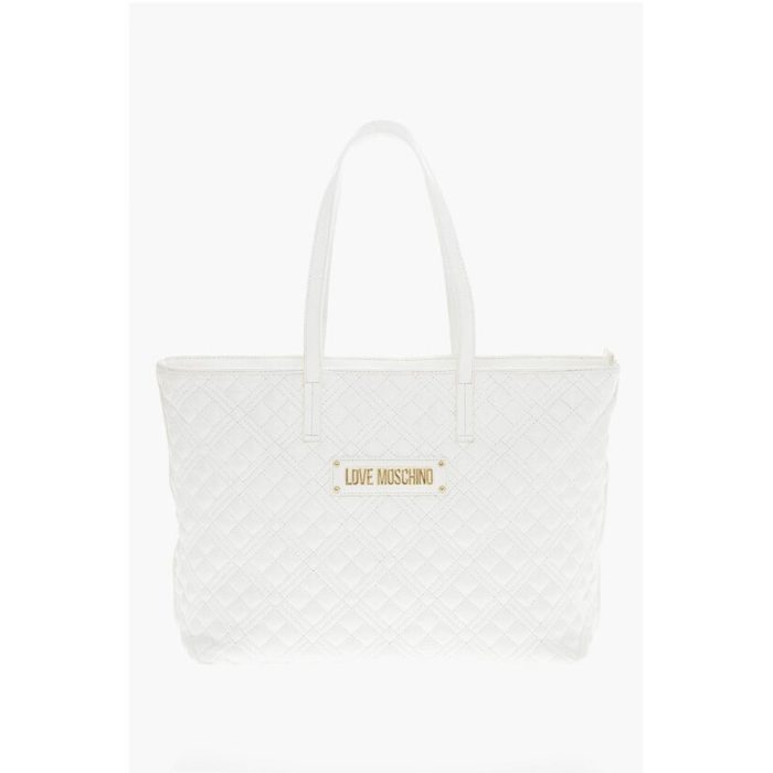 Moschino LOVE Quilted Faux Leather Tote Bag with Metal Logo
