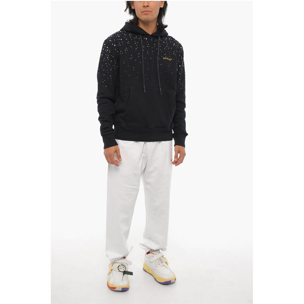 Off-White Brushed Cotton Hoodie With Jewels