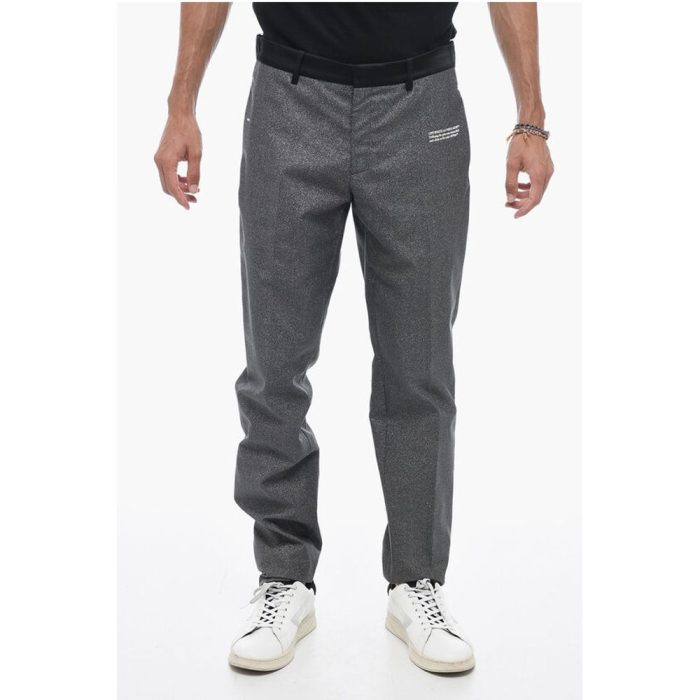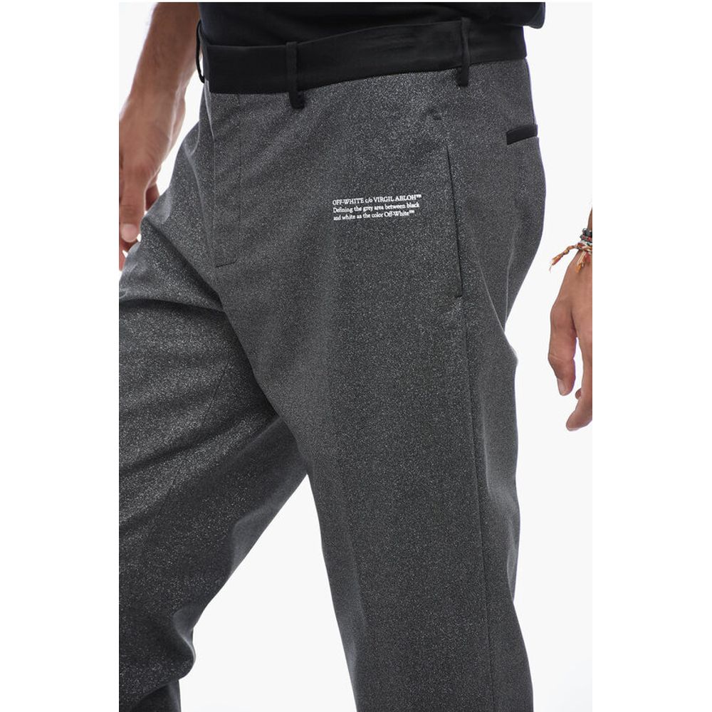 Off-White Glittery Tailoring Pants with Satin Detailing