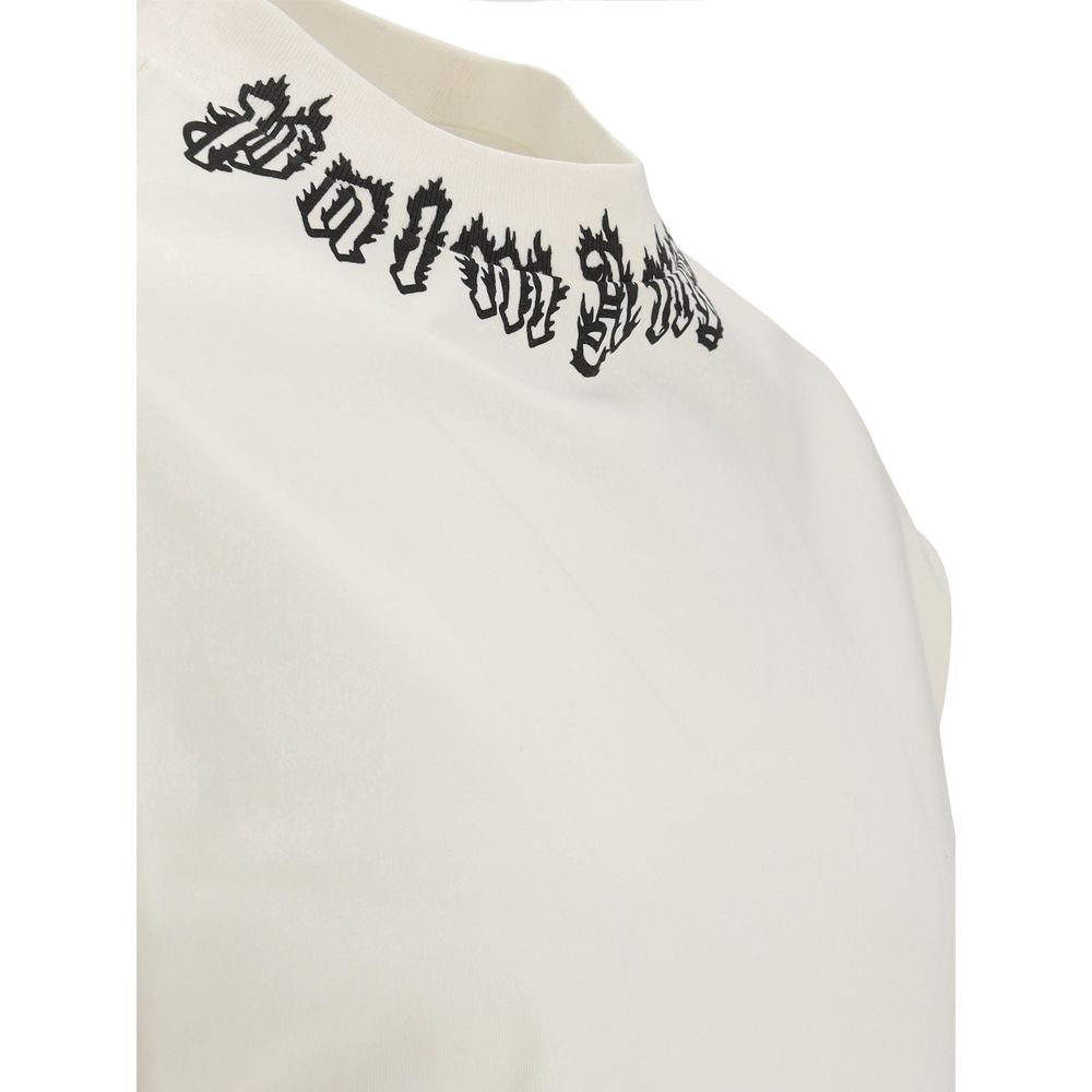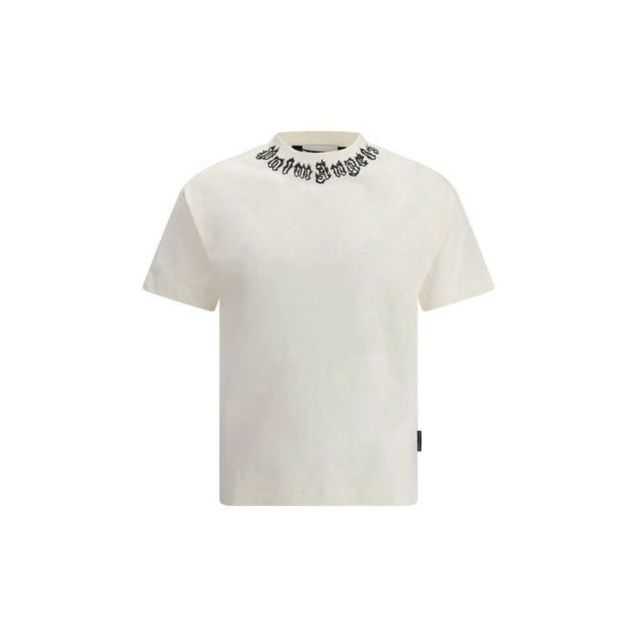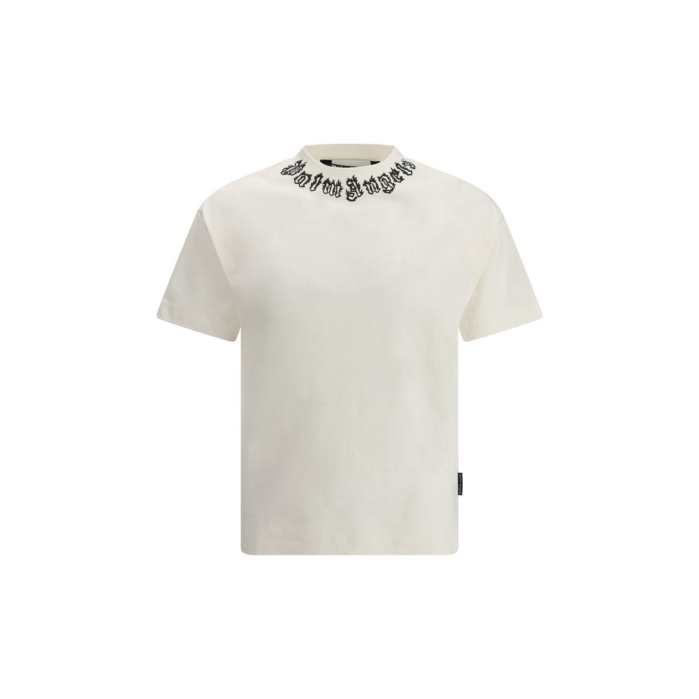 Cotton T-Shirt by Palm Angels, ribbed crew neck with contrasting iconic brand monogram, monochrome pattern, regular fit.