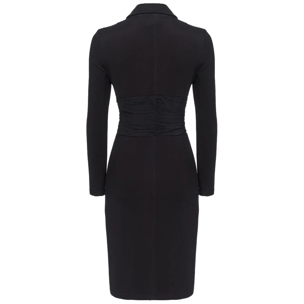 Pinko dress in technical stretch viscose fabric with a fluid neoprene effect and a gathered georgette band detail on the chest. Fitted line with a shirt collar and long sleeves. Front metal zip fastening