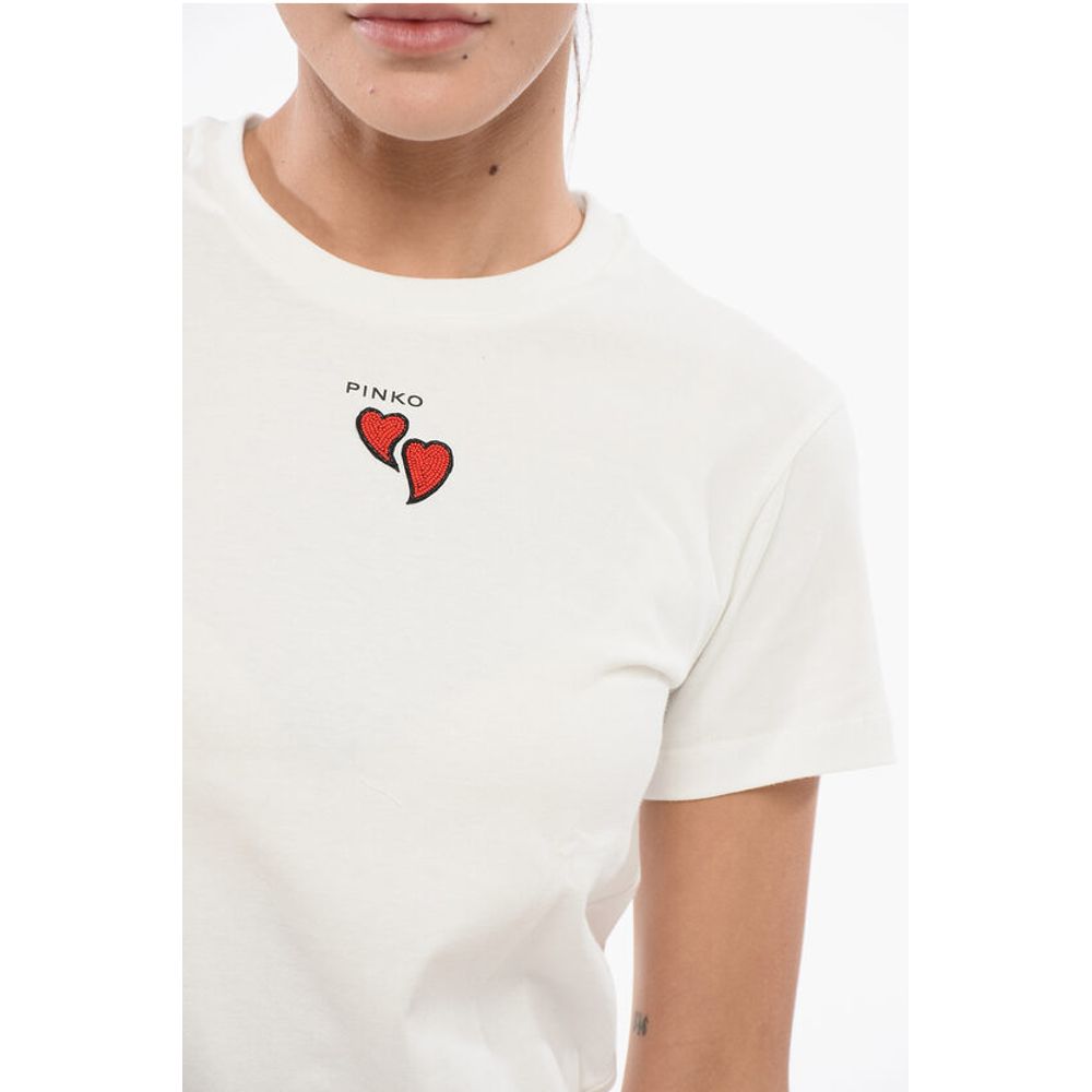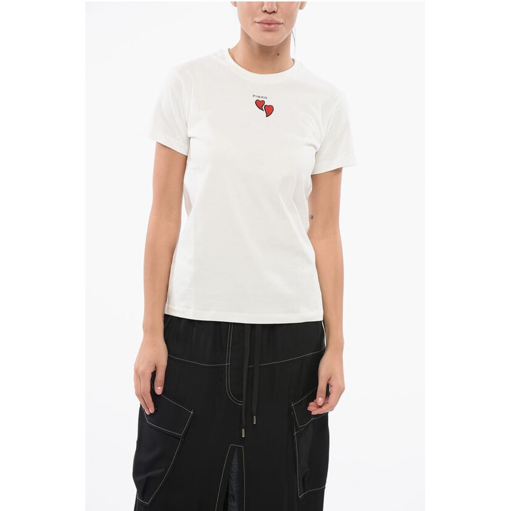 PINKO Cotton Crew-neck TRAPANI T-shirt with Contrasting Hearts