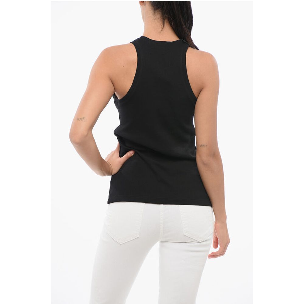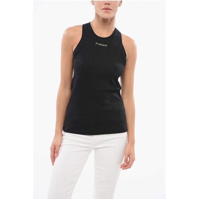 PINKO DENIM Ribbed Tank Top With Golden Logo