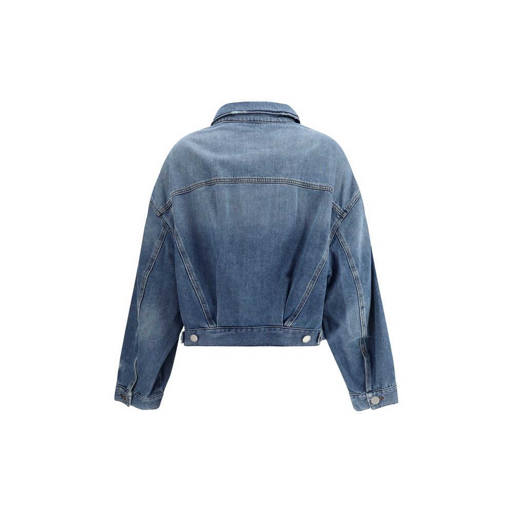 Pinko’s Denim Jacket features a classic collar and front button closure. Complemented by two front patch pockets with flaps and two side welt pockets, it combines practicality and style, making it a versatile and modern garment.