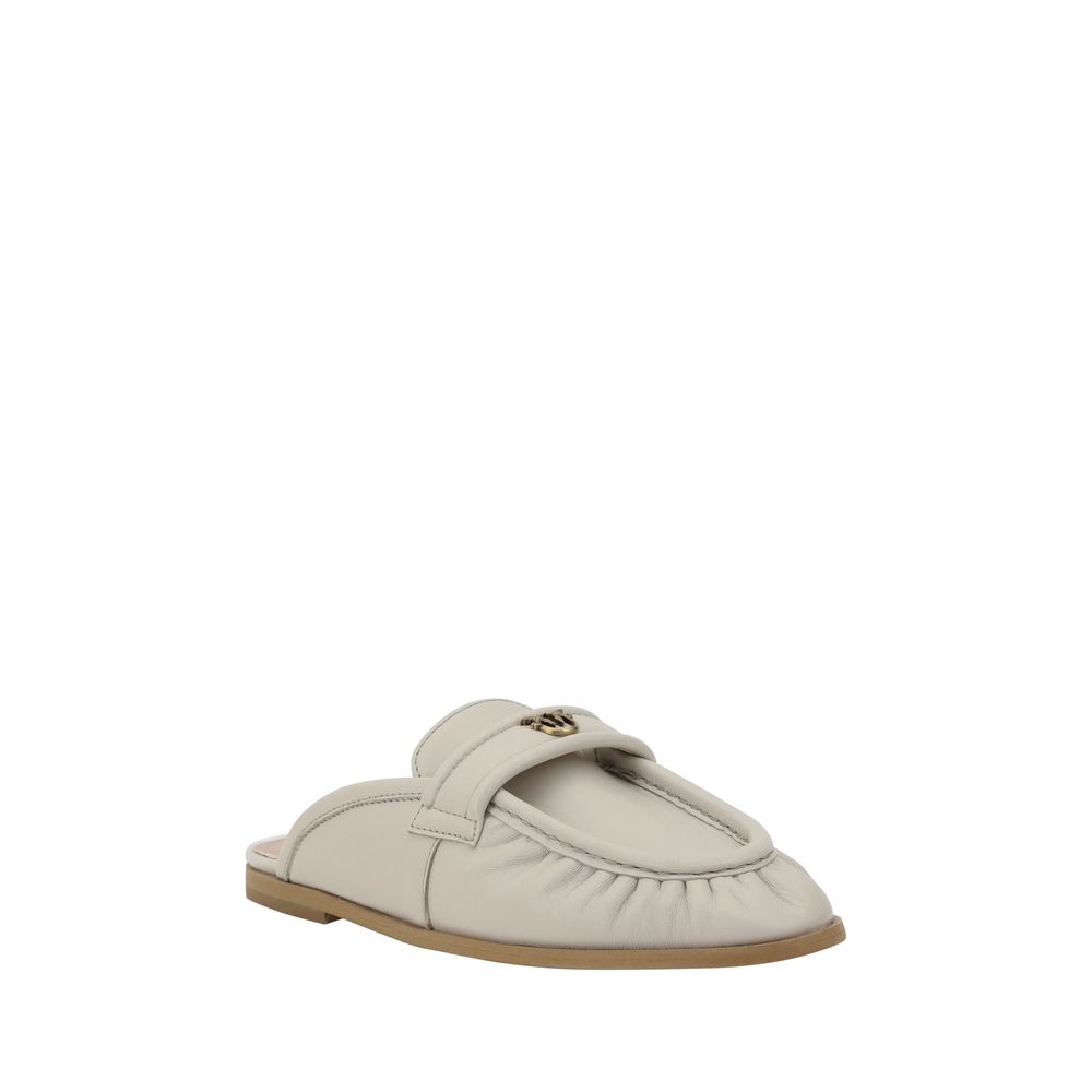 Pinko’s leather Naty Mules features a round toe and a loafer-style design, combining elegance and comfort in one piece. The iconic Love Birds plaque is applied on the front, adding a distinctive and romantic touch. The flat sole ensures a comfortable walk, while the logoed insole highlights the brand’s prestige. A sabot that combines practicality and style with sophisticated details and a timeless design.