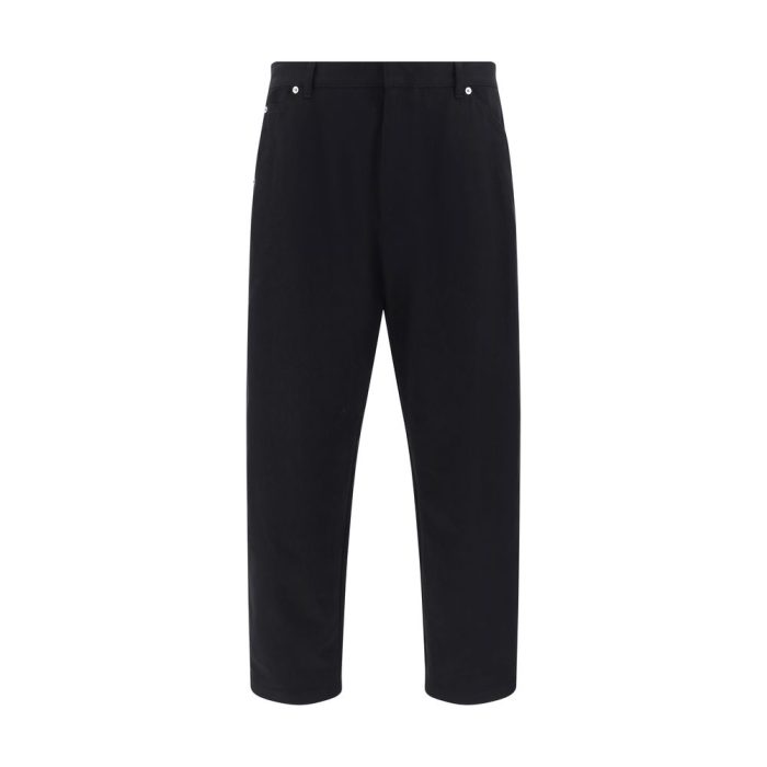 Prada’s Pants made of cotton twill have a modern and refined design. They feature a concealed front button, hook-and-eye and zipper closure for a clean, minimalist effect. The tapered-leg silhouette is completed with two side pockets and a hidden back pocket. The straight hemline lends a touch of understated elegance, while the iconic enameled triangular plaque applied to the side panel stylishly signs the garment. Perfect for a contemporary and distinctive look.